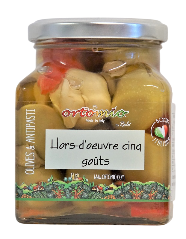 Accueil » Boutique » Antipasti » Antipasti aux olives » HORS D’OEUVRE 5 GOUTS 280G/6 ORTOMIO