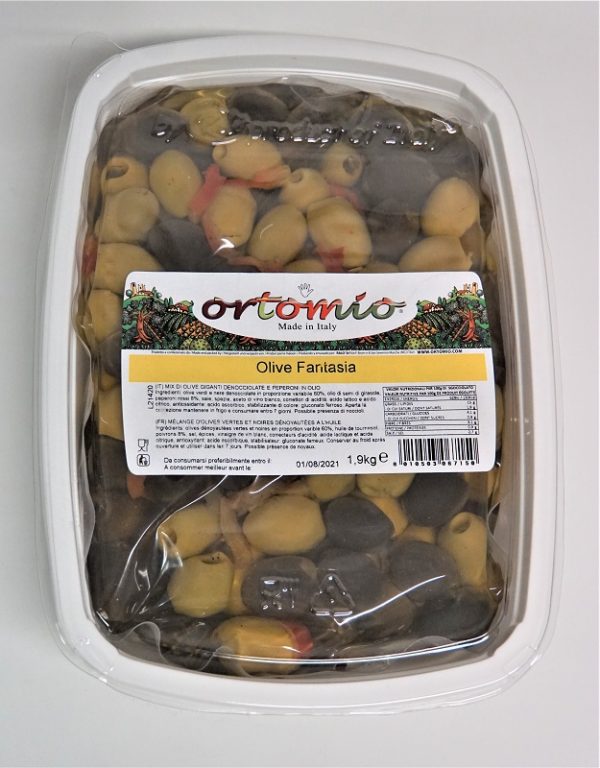 Accueil » Boutique » Antipasti » Antipasti aux olives » OLIVES FANTAISIE 1.9KG/2 ORTOMIO